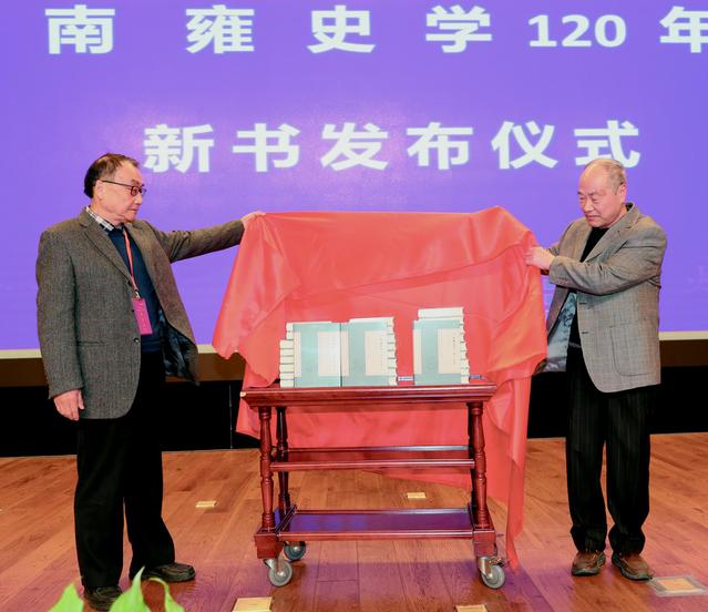 作为院庆的献礼之一,历史学院选辑了120年来学院学人的代表作,形成八卷本鸿篇巨著《南雍史学120年》。大会现场举行了新书发布仪式,张生介绍成书概况,历史学院老领导崔之清、朱瀛泉为新书揭幕。