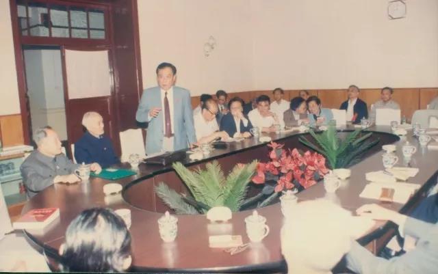 图为冯致光先生(站立者)1992年南大90周年校庆期间与校友在一起