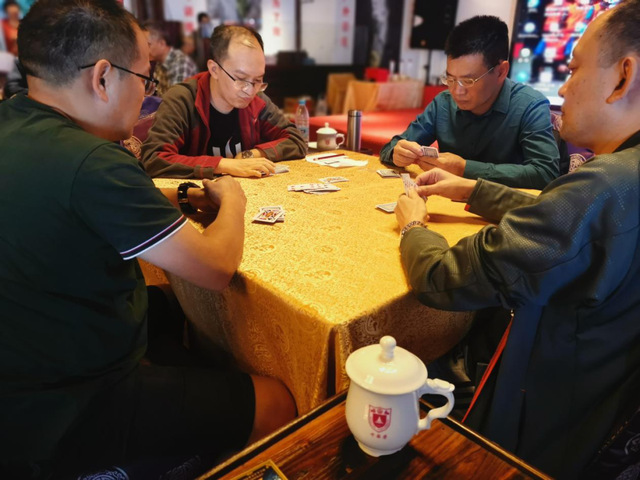 此次比赛参赛队伍众多,现场高手云集,赛况异常激烈。张梁栋校友与卞国荣校友一队强强联合,一路领先,牢牢盘踞前三号桌。许赞波校友与陈立校友一队在开局不顺的情况下凭借良好的打牌技巧与心理素质紧咬比分、稳住局面,连追四轮,最终实现逆袭,挤进八强,位列个人积分第五。许翔校友与曾逾东校友也赢了关键性的三轮,贡献了6.5个场分,为团体名次做出了重要贡献。