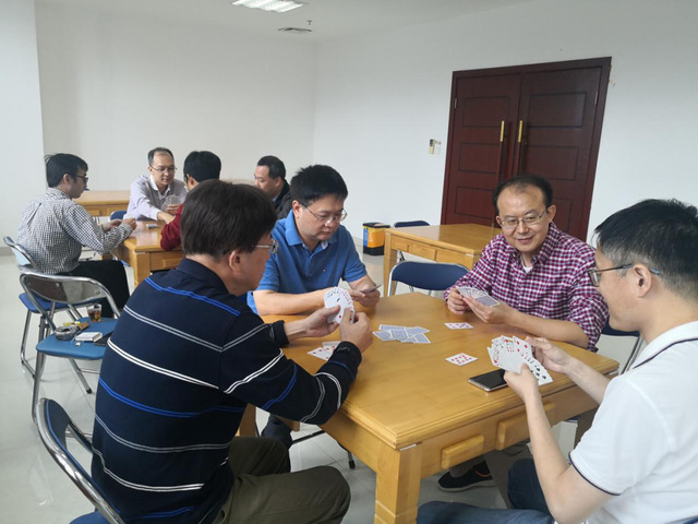 今年9月一收到比赛通知,南大人就由陈旬副会长牵头,组建以邓育锻理事为领队、许赞波校友为技术总教练的战队,积极备战。尽管大家的本职工作都很忙碌,但为了备战,候选队员们还是连续四周进行集中训练。特别值得一提的是82级地质许赞波校友不仅为大家提供了舒适的训练环境,还担任此次备战训练的总教练,每场训练他总是早早到场,耐心为每位队员分析指点,磨练提高大家的牌技。队员们也特别喜欢在他身边观摩练习。