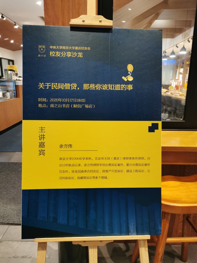 本期主题为“关于民间借贷,那些你该知道的事儿”,分享嘉宾为北京市天同(重庆)律师事务所律师余方伟校友(2006法学本科)。余方伟校友凭借深厚的实操经验为大家全面的普及了民间借贷的相关知识点。以案例为线索,余方伟校友梳理了民间借贷的特点、常见困惑、常见的陷阱及其应对措施。在三个小时的分享中,多位校友就自己关心的问题与余方伟校友进行探讨。参与活动的校友乘兴而来,亦满载而归。