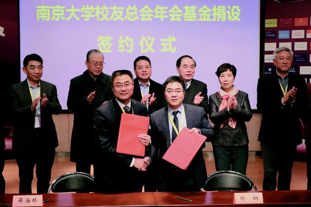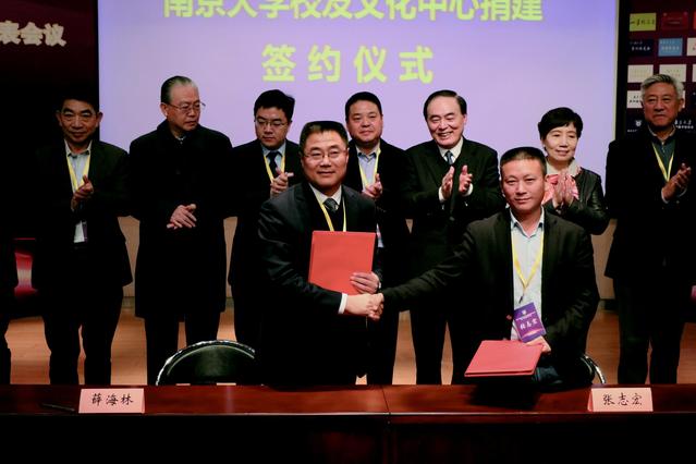 上午会议结束前,在所有与会代表的共同见证下,会议隆重举行了“朱永宁先生向betway必威西校友基金捐赠1000万元签约仪式”“张志宏校友捐建betway必威西校友文化中心签约仪式”和“郑钢校友捐设betway必威西校友总会年会基金签约仪式”三个捐赠仪式。朱永宁董事长、张志宏校友、郑钢校友分别与薛海林副校长上台签约,并合影留念。
