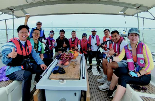 2021年11月21日,南大广州校友帆船队访问珠海蔚蓝航海帆船队,并驾驶大帆船博纳多Beneteau Oceanis 45,从珠海九洲港起航,横穿港珠澳大桥,途经澳门,到达南海东澳岛、白沥岛海域劈波斩浪。