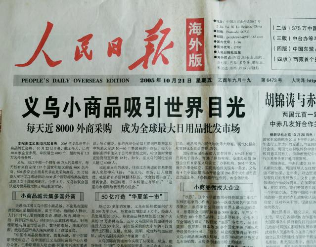 2005年10月21日,《人民日报》海外版头版头条刊登了吴象水和鲍洪俊合作完成的《义乌小商品吸引世界目光》文章。义乌小商品城已然成为全球最大日用品批发市场,每天有近8000名外商来此采购,而这篇文章是全球范围内宣传义乌市场级别最高、影响最大、效果最好的新闻大作。