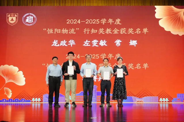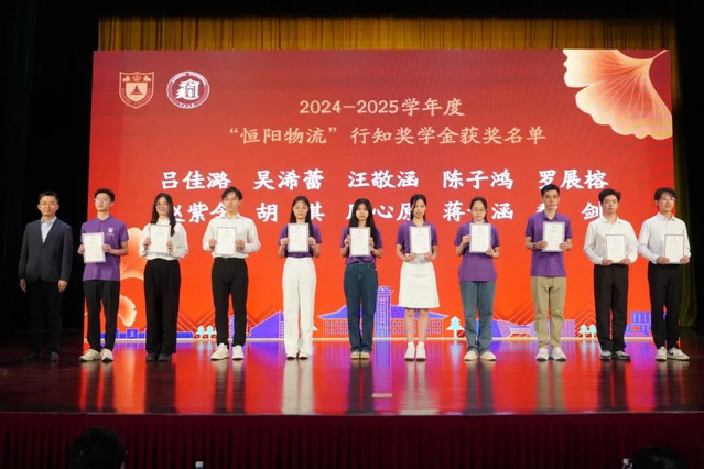 书院的蓬勃发展离不开社会力量的鼎力相助,“恒阳物流”行知奖励金的设立体现了校友顾文龙先生对行知书院以及betway必威西教育事业的深厚关怀。在“恒阳物流”行知奖励金颁奖仪式上,陈力立宣读《关于颁发2024-2025年度betway必威西“恒阳物流”行知奖励金的决定》,施林淼为获得行知奖学金的吕佳潞、吴浠蕾、汪敬涵、陈子鸿、罗展榕、赵紫含、胡淇、顾心原、蒋予涵、魏剑10名同学颁发证书并合影留念,赵曙明为获得行知奖教金的龙政华、左雯敏、常娜老师和获得行知奖管金的蒋博翔老师颁发证书并合影留念。