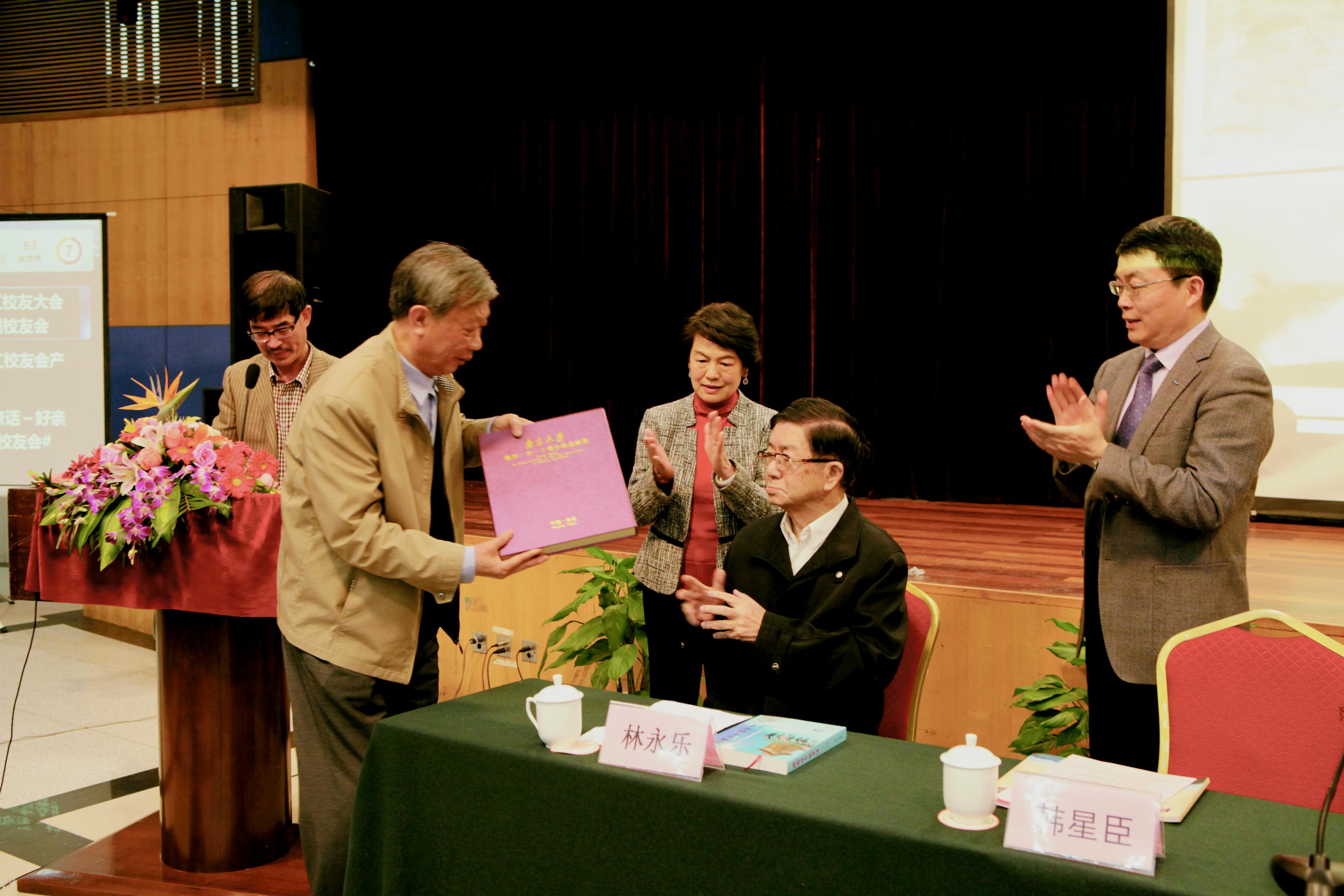 在20日下午举行的betway必威西浙江校友大会上,作为南大校友的张廷鹏老人在家人陪同下应邀来到会场。专程与会的南大原党委书记韩星臣,南大党委副书记、校友总会副会长任利剑转达了学校对老人的问候并送上纪念礼物。南大浙江校友会名誉会长沈莲清向老人敬献鲜花,现场近400名南大校友及其他与会代表纷纷起立向老人表达敬意,许多人拿出手机记录下这一特殊时刻。