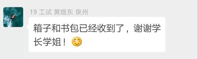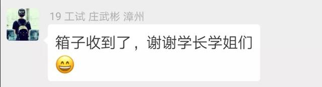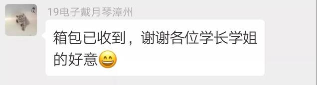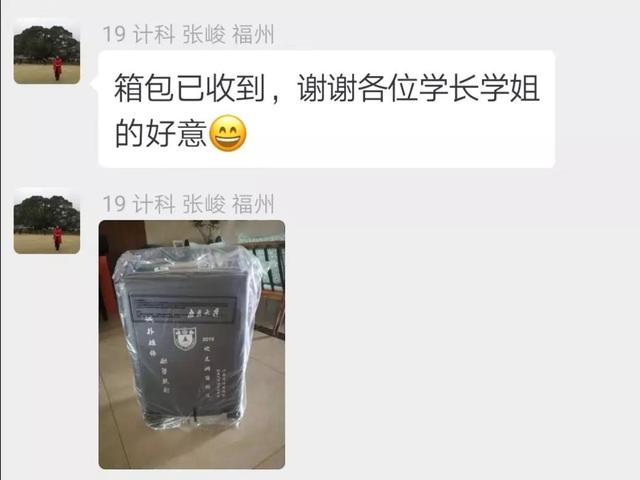 龙海一中陈家伟新生在李金萍校友尝试多种方式后,最终取得了联系。建阳一中宋子航新生在被校友会学长联系上时,已过了夜里12点,而当得知校友会将于次日寄来精美箱包,他惊喜地说,校友会好贴心啊!