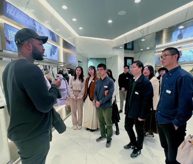 到会校友一起参观了波司登旗舰店,在现场学习了中国品牌的先进技术。波司登是一个享有盛誉的中国品牌,以其高品质的羽绒服闻名于世。