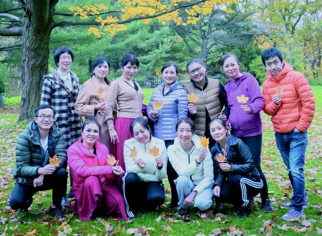 有了想演绎的心愿,如何能在短短的时间内把它集体排演出来,这成了一个难题。因为南大多伦多校友会的舞美健身队也是年初才成立,校友们都是为了锻炼身体的原因加入,会跳舞只有寥寥几个,其余的校友们要么是运动高手,要么是美食达人,对舞蹈却是一张白纸。但是本着对莫愁的那种情怀,大家硬是不怕困难,从如何在舞蹈中优美走路开始学起,一步一步,在阿梅队长的带领和黄亚红Angela(历史)老师的指导下,坚持一周一次线下学习,力求把动作全部学会,然后再细扣动作。为了能有一个比较宽敞的排练场所,舞蹈队的队友们转战几个公园,天晴在草场练,下雨就在亭子里练,后来王燕(数学)又开放自己的家,让队友们集中去她家练舞。