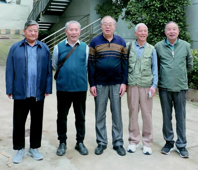 参加这次返校聚会的人员有:许敖敖校长和单平夫妇、谢乃康老师、周雄夫人黄嫔、胡梅芳、王道治、沈惠德、张益平、彭桂梅母子、舒建中夫妇、陆荣云夫妇、陈文秀和徐兆夫妇,特别难能可贵的是远在加拿大的郑宏春,在得知老同学即将返校聚会后,夜不成寐,于是排除万难抢到了两张机票,拖着新冠刚刚痊愈的老太太,绕了半个地球赶了回来。