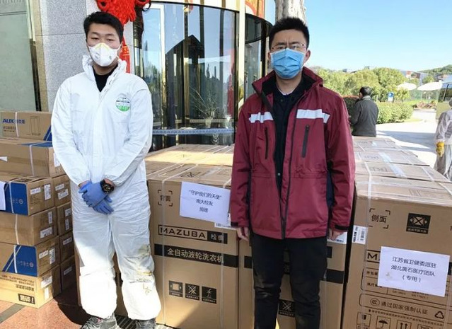图为“betway必威西校友援助江苏援黄石医疗队公益捐赠”活动捐赠物资
