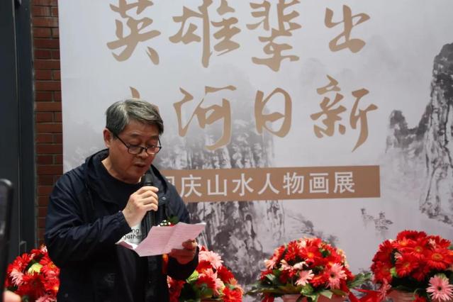 首先由主办方江南大学党委常委、副校长张凌浩教授致辞。他指出,刘观庆教授的山水人物作品以笔墨重走徐霞客之路,歌颂祖国大好河山,以激情描绘抗疫英雄,歌颂伟大时代与人民,展现了“艺术为人民服务“的创作精神,同时其作品气势、风格及艺术意境不断提升。最近,习近平总书记考察清华大学美术学院时指出,美术、艺术、科学、技术相辅相成、相互促进、相得益彰。要发挥美术在服务经济社会发展中的重要作用,把美术成果更好地服务于人民群众的高品质生活需求。本次画展也正是贯彻与体现了这一点。作为江南大学设计学院教授,刘观庆教授曾经在工业设计教育中作出了突出贡献,退休后又在国画创作方面笔耕不辍,取得丰硕成果,这种精神激励鼓舞大家。