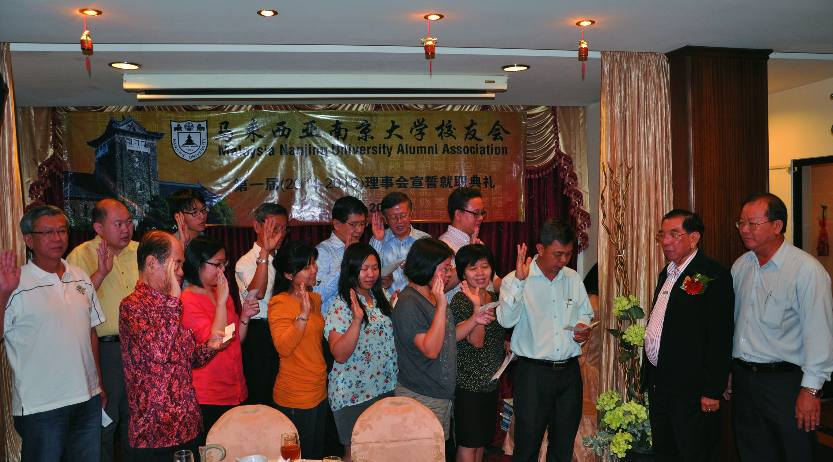 会议产生校友会第一届(2014—2016)理事会,并在拿督谢诗坚博士与邱文发主持下举行了宣誓仪式。