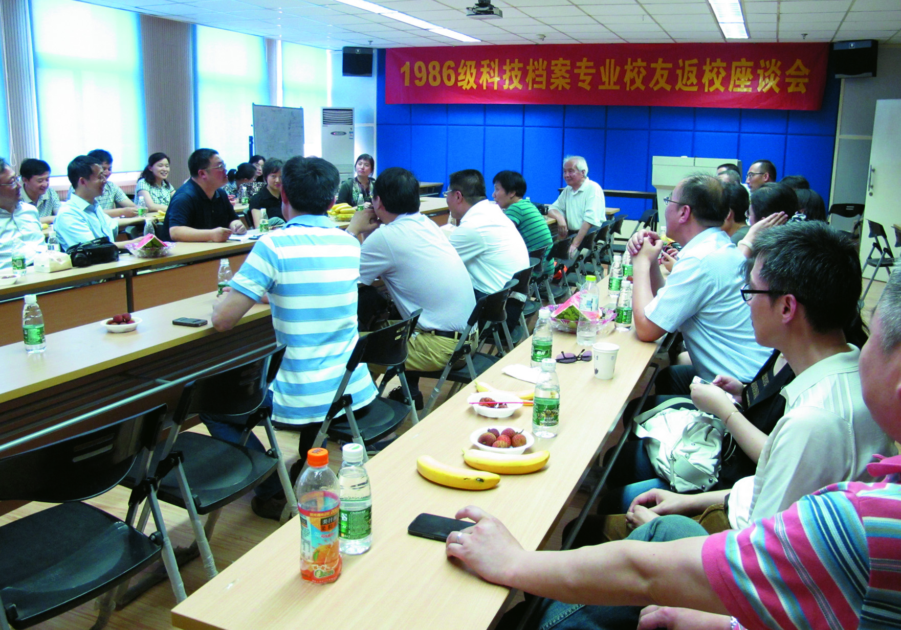 6月14日,和风习习,我校1986级科技档案专业校友40余人从全国各地赶来,齐聚母校。信息管理学院1507报告厅充满了欢声笑语,师生相聚,共话人生。薛海林副校长、信息管理学院江莹书记、原图书馆学系主任徐竹生教授、原信管系副书记杨群英老师等与校友们亲切会面。座谈会由朱庆华教授主持。