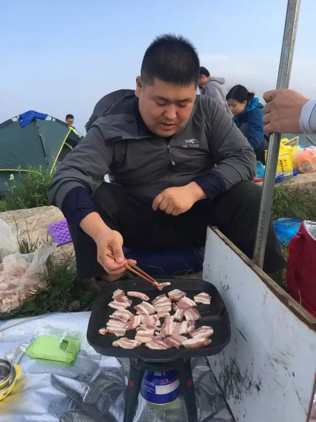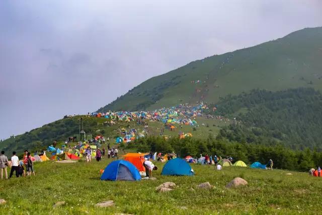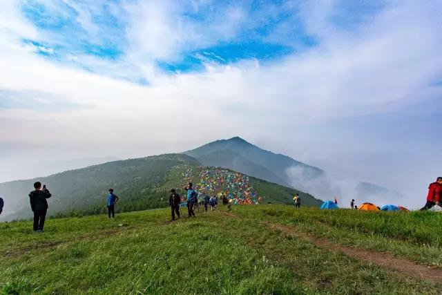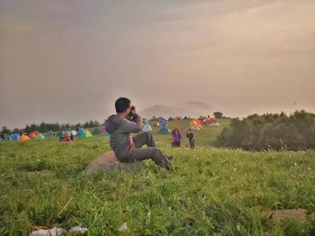 这个季节的海陀山总是热闹非凡,清友俱乐部大师兄早早自驾前来,为大部队占好营地,远离鞍部中央密集的帐篷区,远望小海陀山峰的身影。
