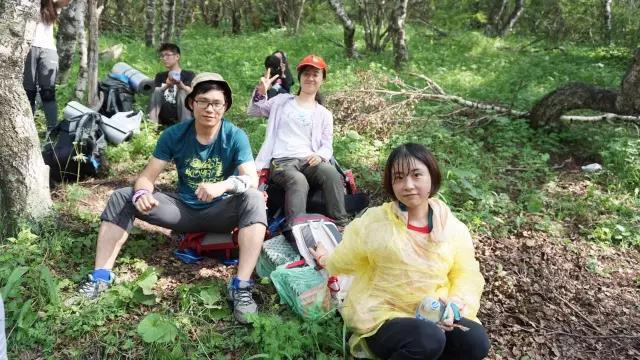 经过三小时的跋涉,B队来到大小海坨之间的鞍部,脱下雨衣,擦去身上的泥泞,望着丛丛云朵在身边飘过。