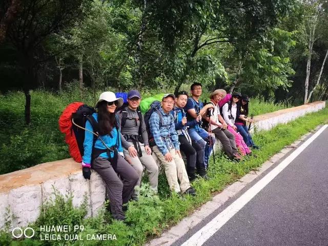 下山回程,A队人数扩大了,左2是南驴领队松鼠师兄,左3是西财领队望风师兄。
