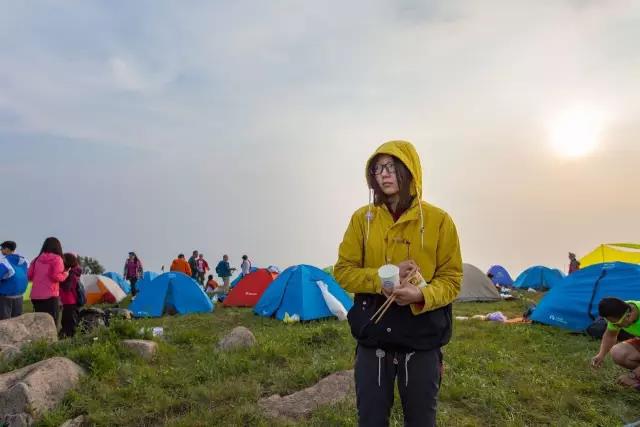 遇雨也是幸事一件,不见风雨也难得见这般美妙的云海。图为领队Lola发呆被拍。
