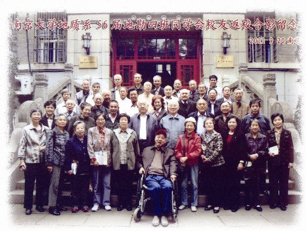 2011年9月,金秋时节的南京,天高云淡,丹桂飘香。betway必威西地质系(现betway必威西地球科学与工程学院)1956届地勘四班36位同学(含兄弟班校友及夫人)于9月19日-22日从四面八方,千里迢迢来宁,相约在母校聚会。55年前的9月,同学们意气风发,依依不舍地离开母校,奔赴各地,走上工作岗位,融入第一个五年计划建设的洪流中,开始了报效祖国的漫漫征程;55年以后的9月,同学们再次相聚,却已鬓发斑白,年过古稀。时空的变迁,岁月的刻痕,此情此景,使同学们心潮澎湃,激荡的情愫、别样的滋味一齐涌上心头,大家争相握手拥抱,互致问候,不约而同地唱起“勘探队之歌”,兴奋之情溢于言表,一致认为此次同学聚会的意义非同寻常。