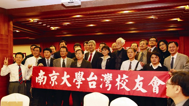“台北话春联谊会”上,中大、金大和南大在台校友与母校领导合影留念。