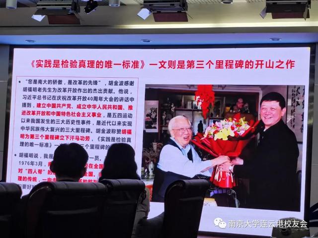 南大66届生物系82岁老校友江海钟作了《连云港市医药工业的创业和崛起——献给建党100周年、母校119华诞》的重点发言。