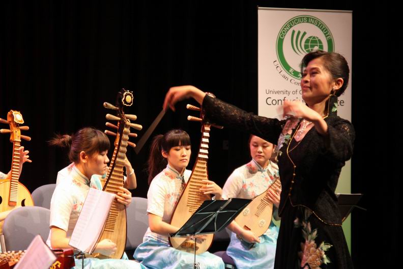 11月20日至12月2日,我校学生民乐团一行20余人赴英国兰开夏大学、利物浦大学、谢菲尔德大学、兰彼得大学、伦敦商学院(含伦敦孔子学院、伦敦中医孔子学院)、诺丁汉大学等8所大学孔子学院和英国女王中学孔子课堂、Central Lancaster 高中、Costock Hall community 高中、All Hallows Catholic等四所英国高中,进行了10场中国民乐专场演出。整个演出取得了巨大成功,受到当地大学孔子学院师生和当地民众的热烈欢迎,观众多达5000多名,反响十分强烈。当地的孔子学院所属大学主管领导、地方教育主管部门的官员、市长、区长及各界华侨领袖等也观看了演出。本次出演是国家汉语推广领导小组办公室(孔子学院总部)的统一部署,旨在进一步加强与海外孔子学院师生和当地民众的交流与沟通,传播中国文化,促进中外大学生和当地民众的互相认识和了解。