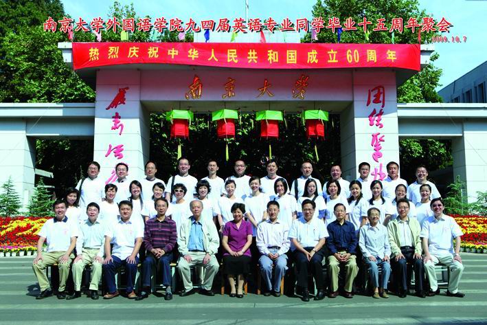 记着“今日我以南大为荣,明日南大以我为荣”这一熟悉的话语,怀着对校园时光美好的回忆,念着同桌的你和上铺的兄弟姐妹,想着曾经给我们含辛茹苦授课的恩师们,betway必威西外国语学院94届英语专业28名毕业生,在离开betway必威西校园15周年后,从祖国的四面八方,于2009年10月7日,重聚南大校园,回到了这个改变我们一生的地方。
