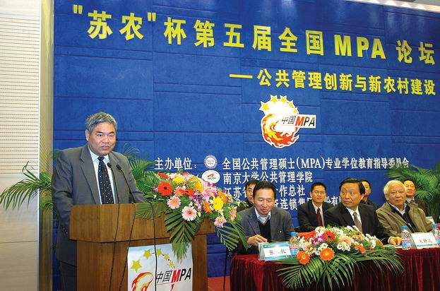 原江苏省人民政协副主席胡福明、全国MPA专业学位教育指导委员会副主任刘家林、我校党委书记洪银兴以及江苏省供销合作总社有关领导等出席了11日上午举行的开幕式。开幕式由公共管理学院副院长张凤阳主持,洪银兴书记和公共管理学院院长童星教授分别致辞。洪银兴书记在致辞中代表betway必威西向本次论坛的顺利举行表示热烈祝贺,并对江苏省供销合作总社及其所属江苏苏农农资连锁集团对论坛的大力支持表示感谢。洪书记还就新农村建设与公共管理间的关系阐述了自己的学术观点,引起了与会者的热烈反响。
