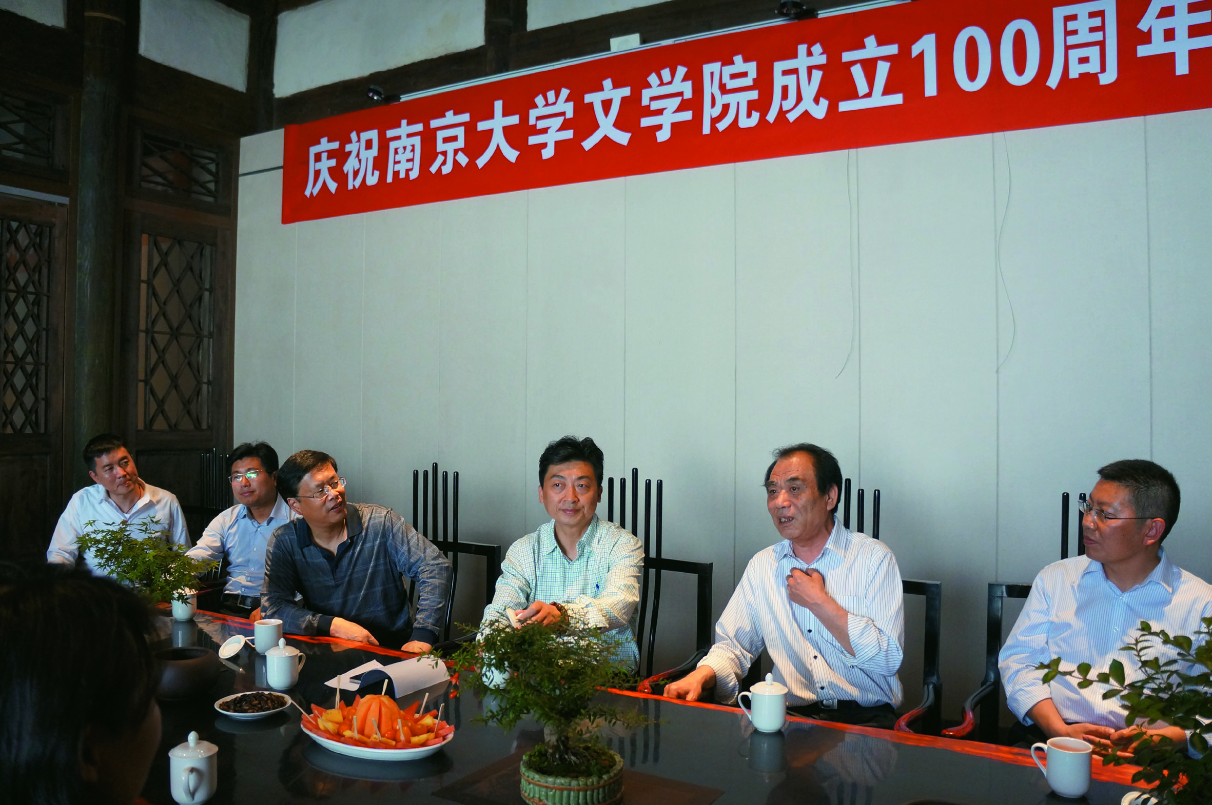 中文、法律、气象、地科等系近30位新老校友欢聚一堂,畅所欲言,共同追忆昔日南大求学生涯,祝福文学院百年诞辰。