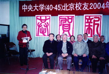 中央大学(40-45)北京校友会2004年新春联谊会2月7日在北京民主同盟礼堂举行。这是北京校友第二十次新春联谊活动,参与这次活动的校友有50多人。同学们不顾年老体弱,天寒地冻,穿上鲜艳的新春礼服,高高兴兴地再一次来参加老同学们一年一度的聚会。