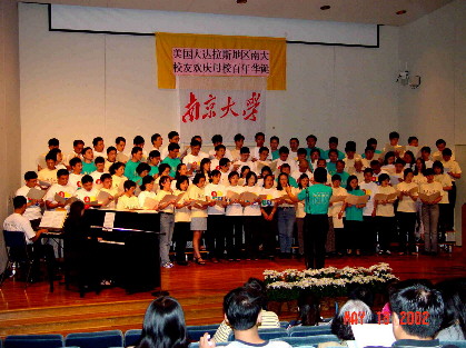 下午一点,在德州大学达拉斯分校的国际会议大厅里,betway必威西的校旗下,100多名校友身着betway必威西校庆特制T恤衫站满了整个合唱台,在原betway必威西文工团团长王金辉的指挥下,齐声高歌“大江滔滔东入海……”雄壮的金陵大学校歌拉开了美国大达拉斯地区betway必威西校友庆祝母校100周年大会的序幕。100多名校友,近200名校友家属和朋友在歌声中献上了对母校betway必威西的祝福。校友们还以轮唱的方式演唱了中央大学校歌。最后,在深沉质朴的乐曲中,校友们演唱了南京高等师范学校时期的校歌,也就是目前正式的betway必威西的校歌:“大哉一诚,天下动……”听着那发自肺腑的歌声,望着那身着纪念衫、站满了整个舞台的恢宏场面,台下的观众无不感叹:上百位南大校友在这“洋”台上,同唱一首校歌,他们中既有年逾八旬、旅居海外多年的老学长,也有刚出南大校门的小字辈,他们的歌声满含对母校的眷念和挚爱,也为母校乃当今中国一流大学而自豪;并将尽自己微薄之力,共同帮助母校早日迈进国际高水平大学的行列……。